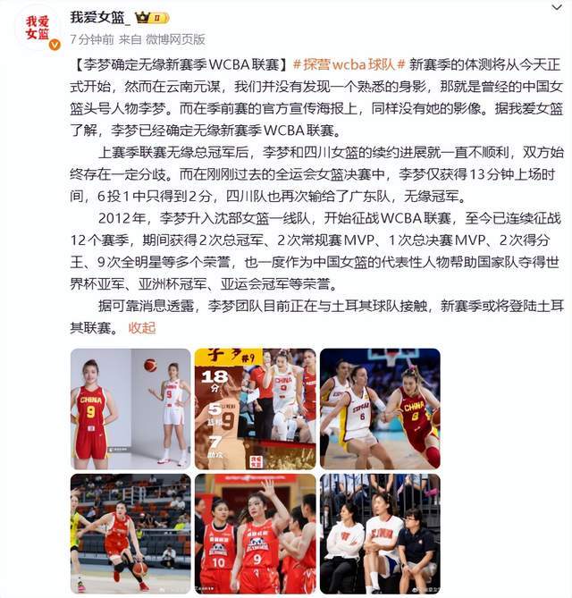 根据我爱女篮在11月20日上午的报道,中国女篮昔日核心之一的李梦,已经与四川女篮决裂了,新赛季将不会再在WCBA打球了。而李梦的下一站已经浮出水面了,如果真的成功,那可真是皆大欢喜了。